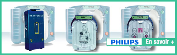 Daexal vous propose également la gamme la plus importante du marché de signalétique pour defibrillateur philips automatique et cardiaque aux normes européennes (Flèches directionnelles, Site équipé d'un defibrilateur) et des kits complets spécifiques à votre lieu d'implantation.