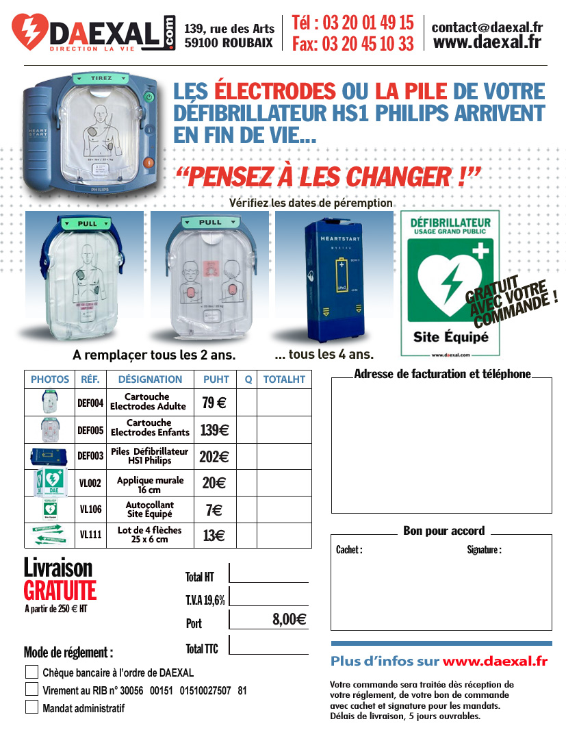 Retrouvez les Electrodes adulte pour hs1 philips et la batterie pour défibrillateur dans les produits associés: